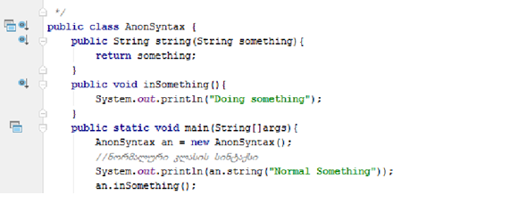 და ინსტანცირება მოვახდინეთ მეთოდის პარამეტრის ადგილას, ანონიმური კლასის როგორ არგუმენტის